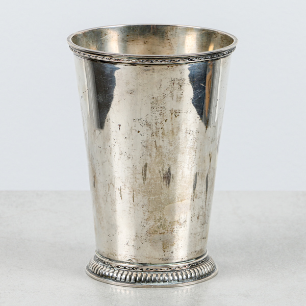 Eric Råström för Råströms Silver & Nysilverfabrik, Stockholm år 1947. Höjd 16cm, Ø11cm. Graverad undersida.
