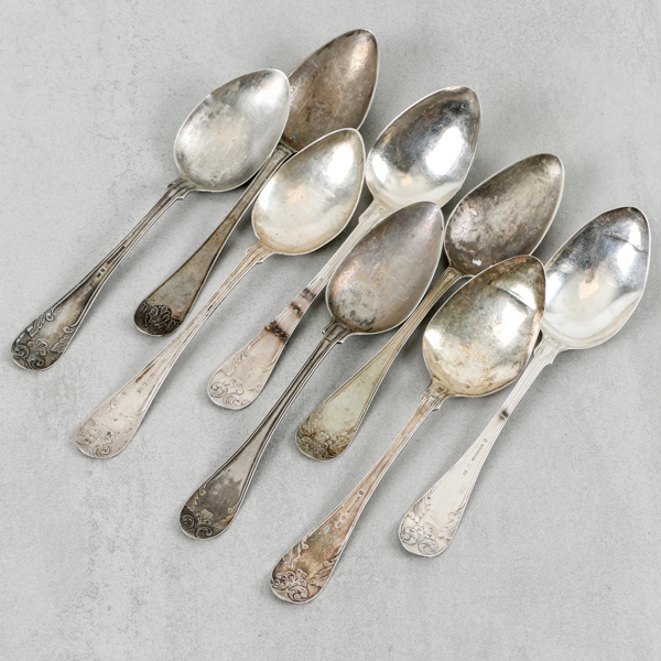 Matskedar, 8st, silver, 1800-talets andra hälft, 261g