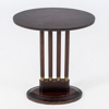 Betsat trä, fot med dekor av mässing, oval skiva, höjd 70, 60 x 38 cm, inköpt i Ryssland 1994 av nuvarande ägare