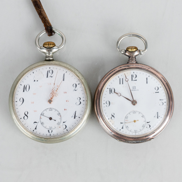 FICKUR, 2 st, silver, bla. Omega, 1900-talets första hälft