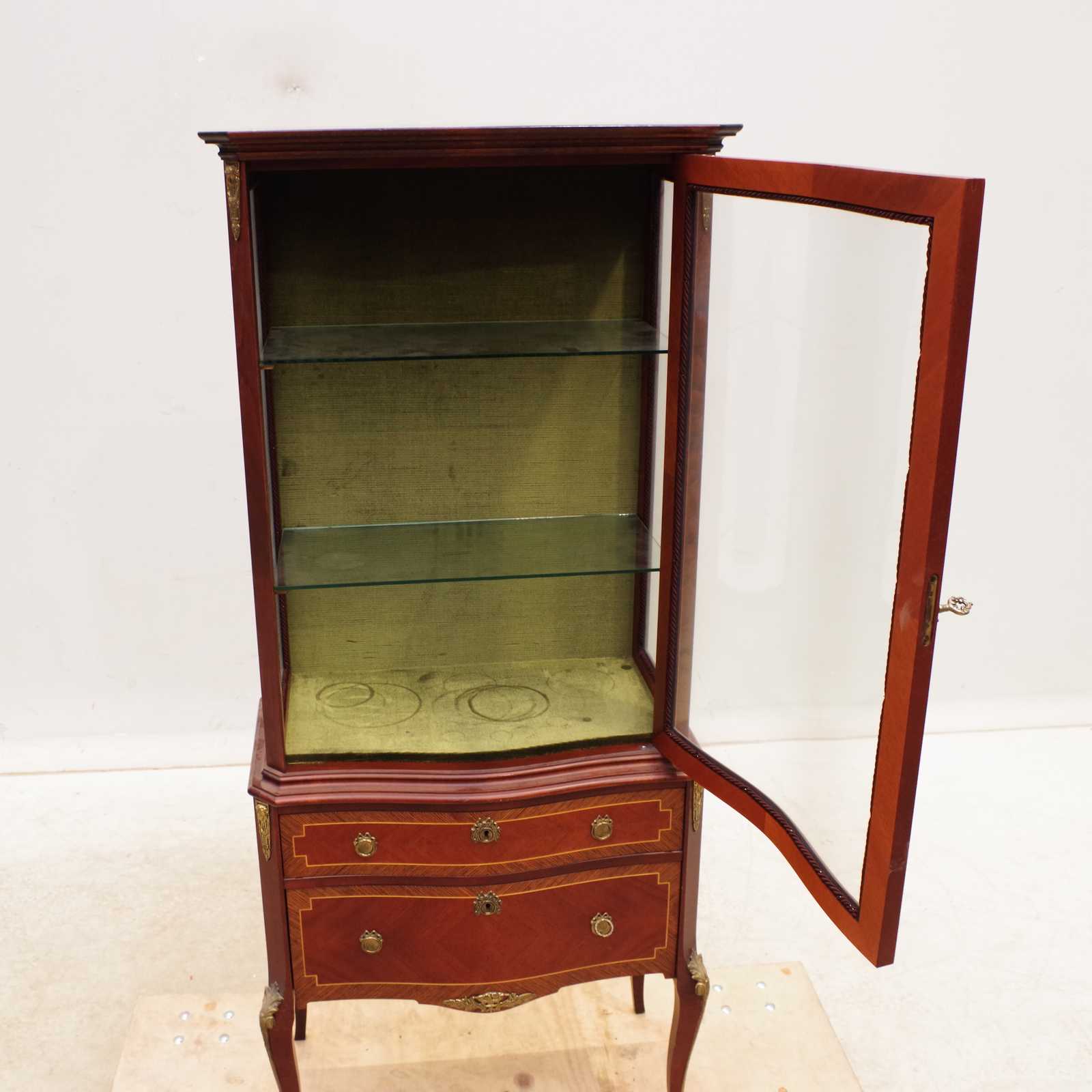 VITRINSKÅP med glasskivor, intarsia, 1900-talets mitt. H:146x 62x 31cm