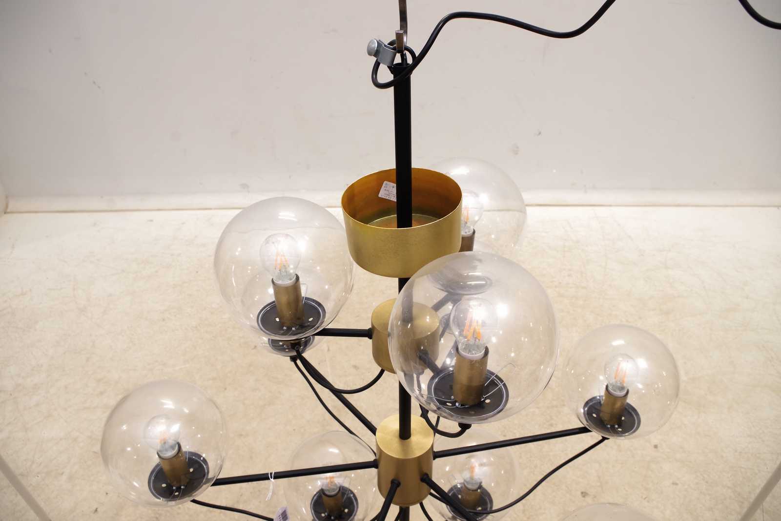 Bilder TAKLAMPA, "Perla", Hallbergs, metall/glas- H: ca 85cm. Obs! 25% moms tillkommer på klubbat pris.