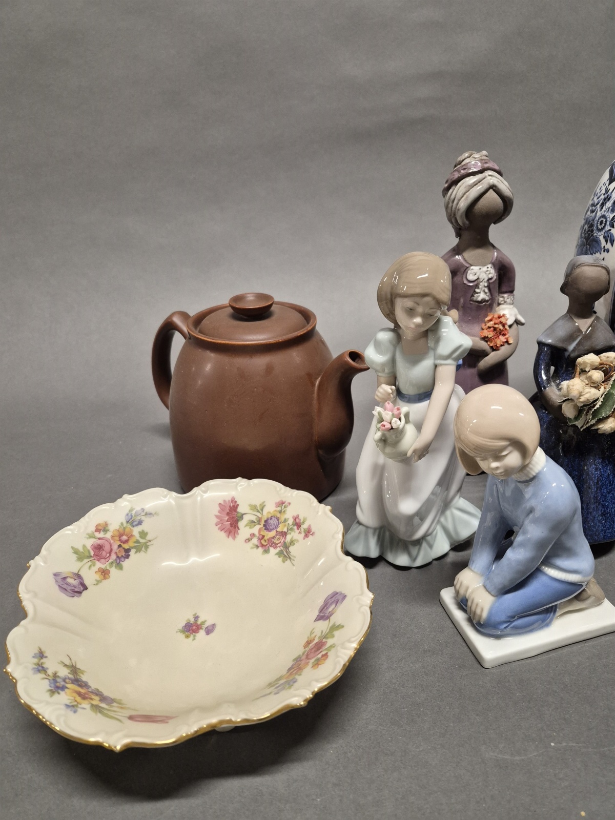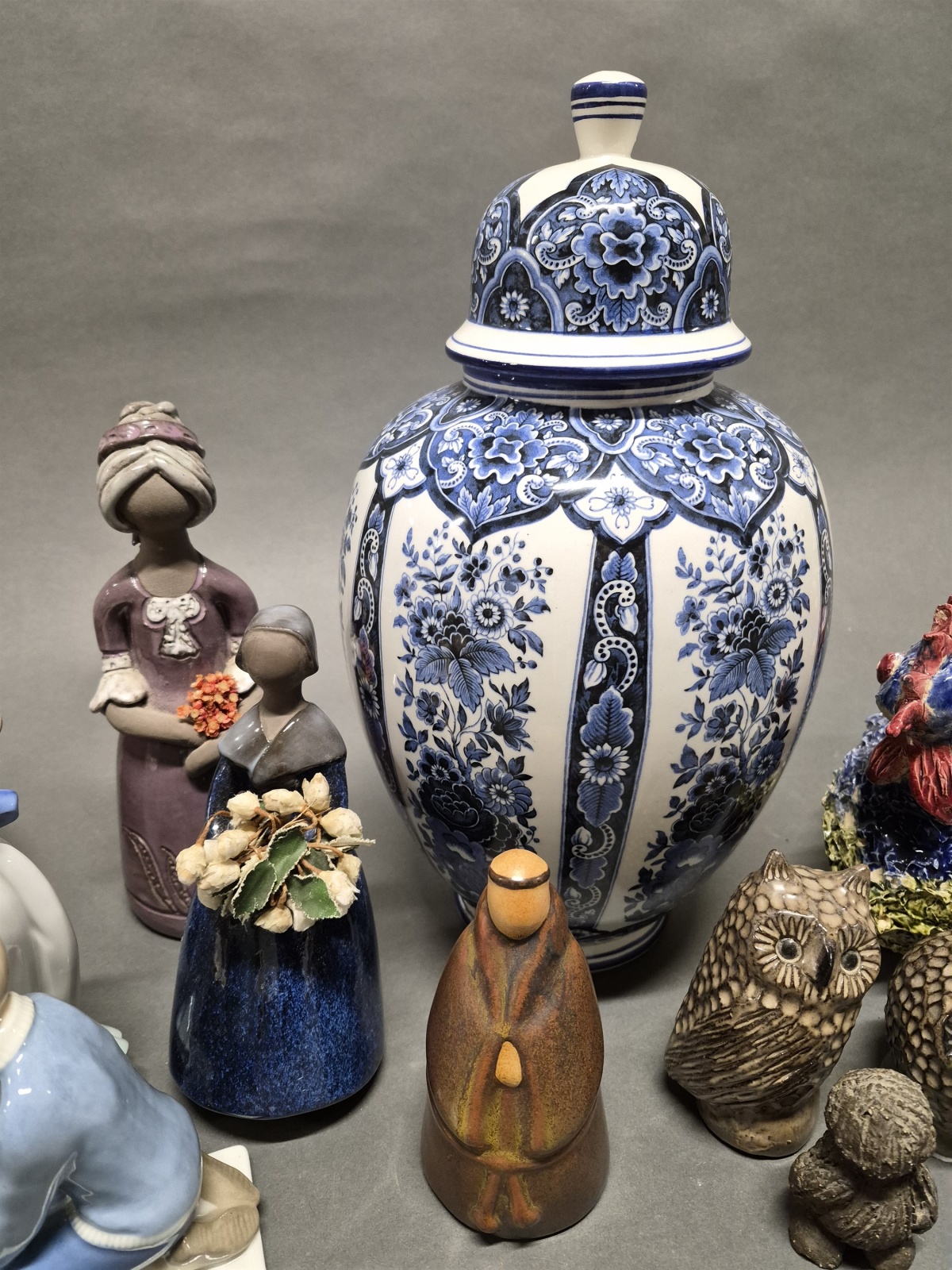 Parti porslin och keramik bla figuriner, lockurna och tekanna Gefle-Upsala Ekeby, högsta höjd 37 cm
