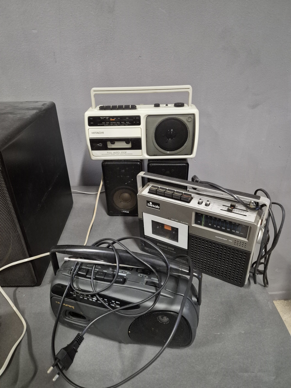 Bilder Parti teknik bl.a kassettbandspelare & högtalare högsta 34 cm