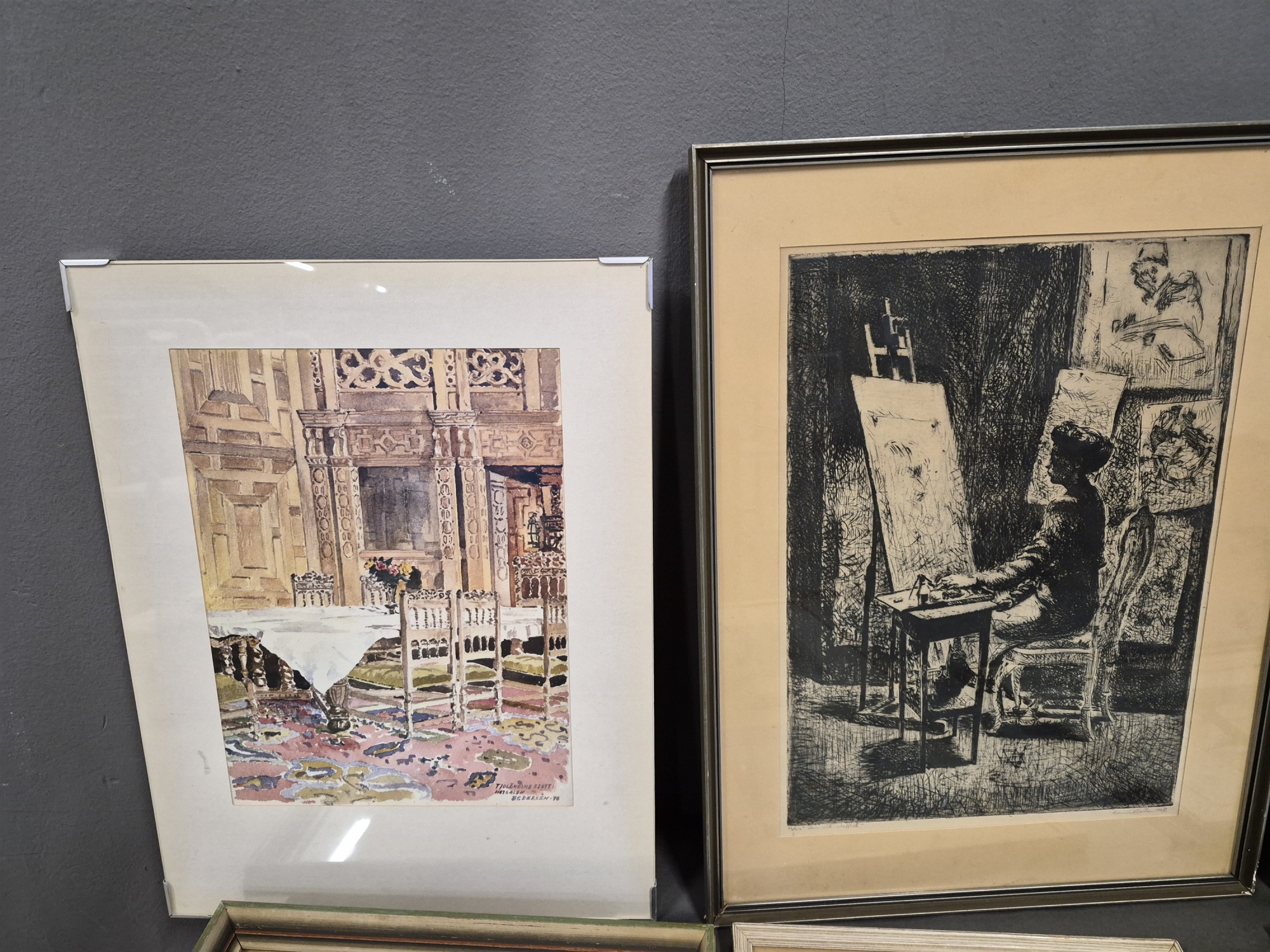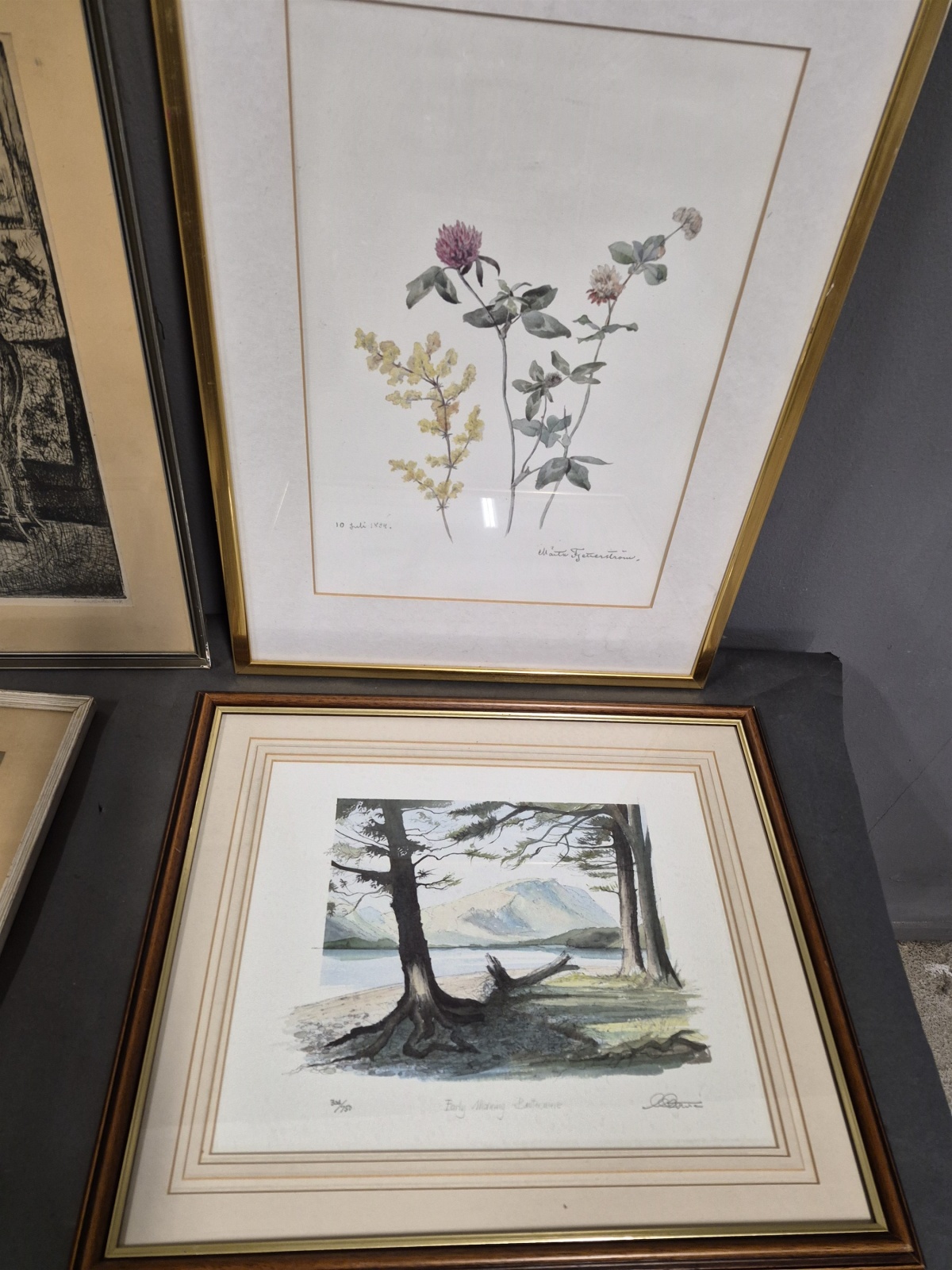 Bilder Tavlor 7 st bl.a akvarell största mått 43 x 56 cm