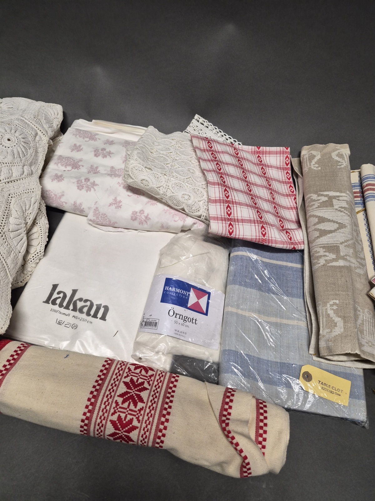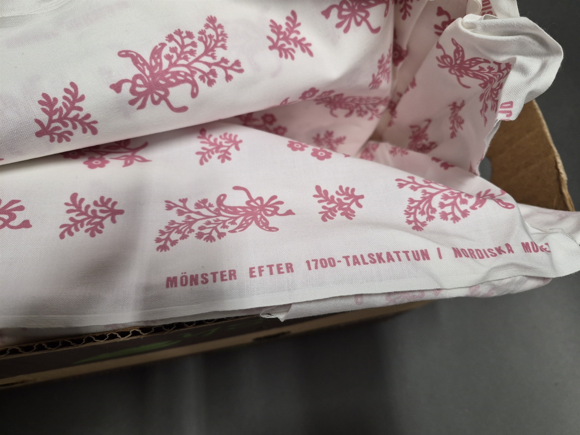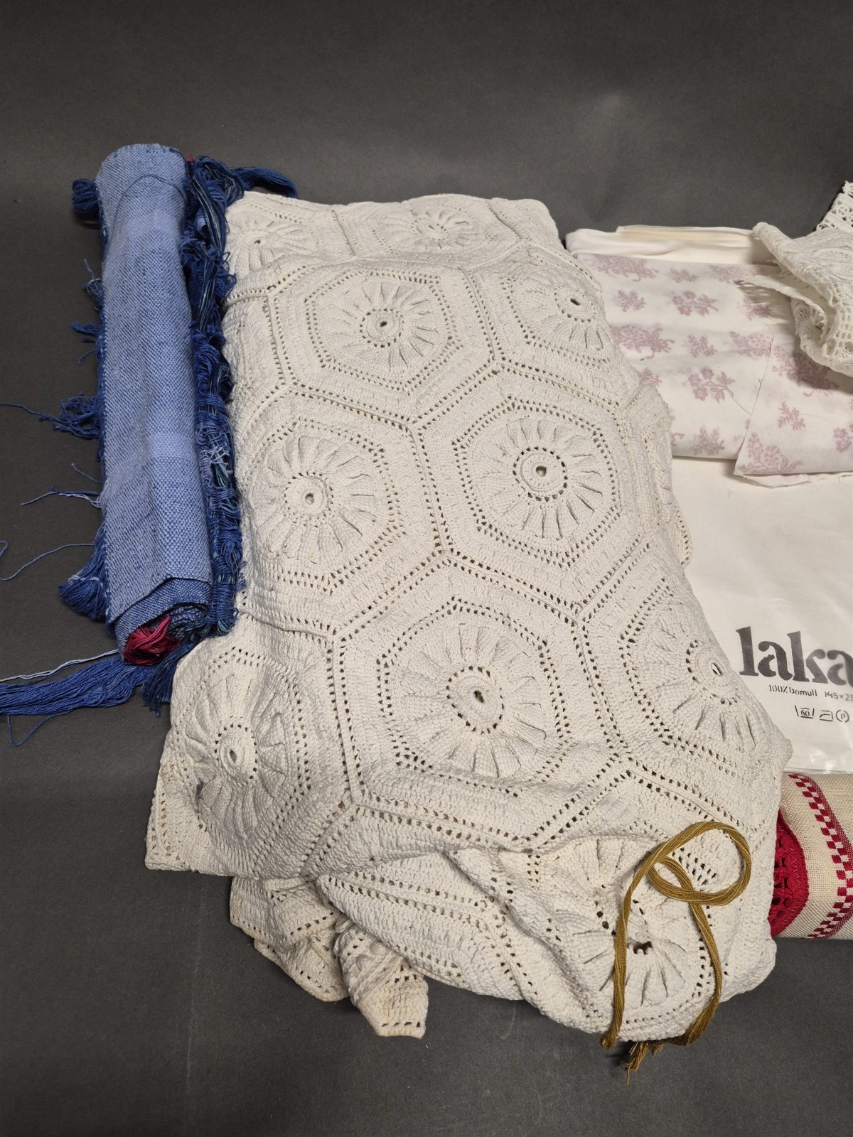 Bilder Parti textilier bl.a virkatöverkast & stuvbit efter 1700-tals mönster