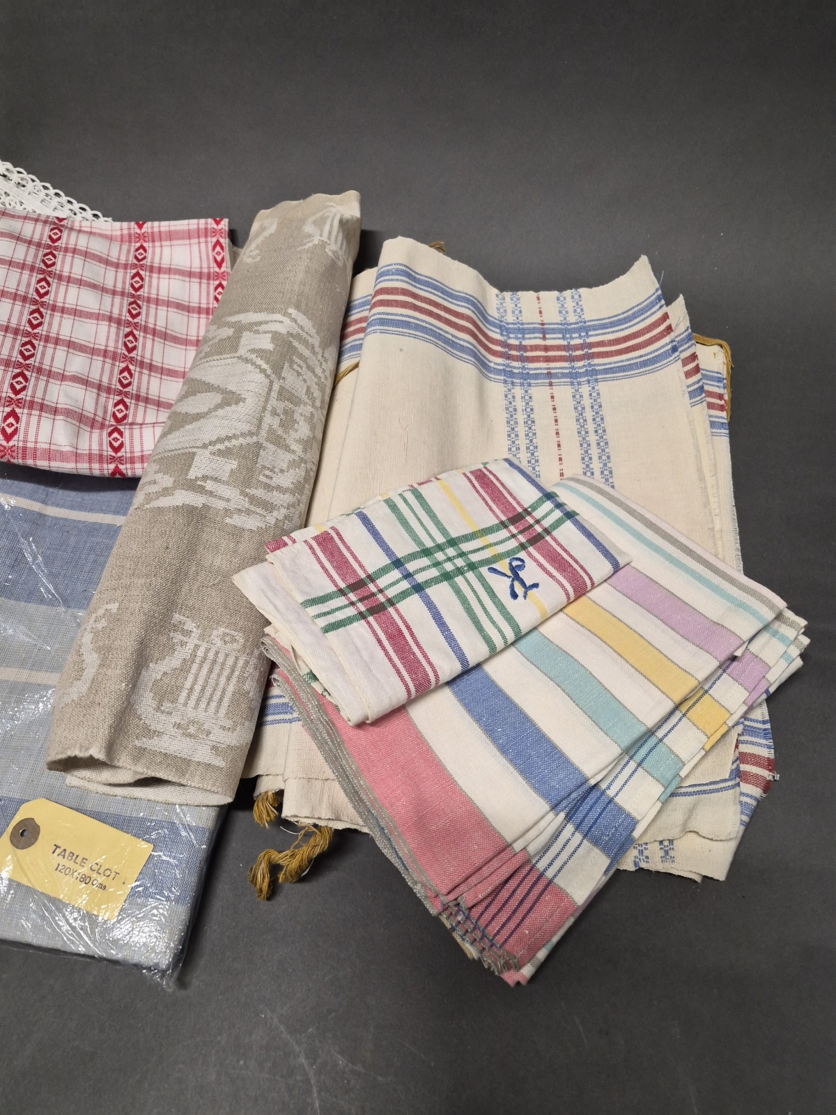Parti textilier bl.a virkatöverkast & stuvbit efter 1700-tals mönster