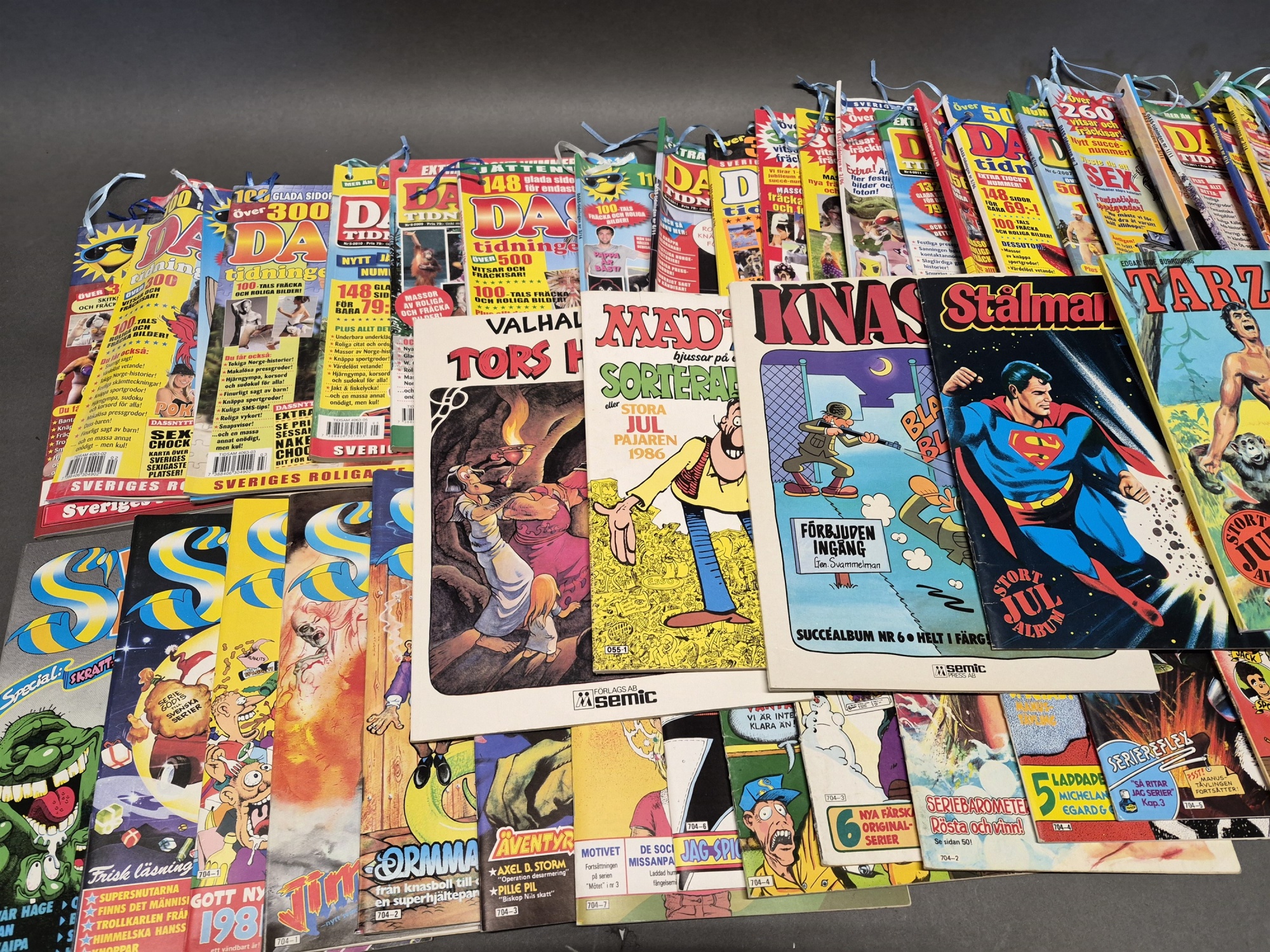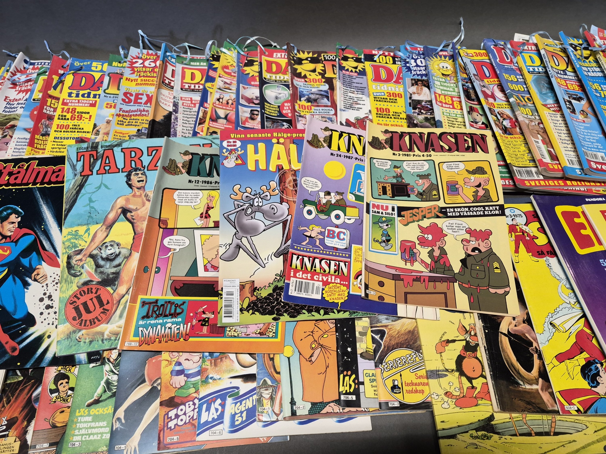 Bilder Parti serietidningar och tidsskrifter mestadels Dass Tidningen och Svenska Serier