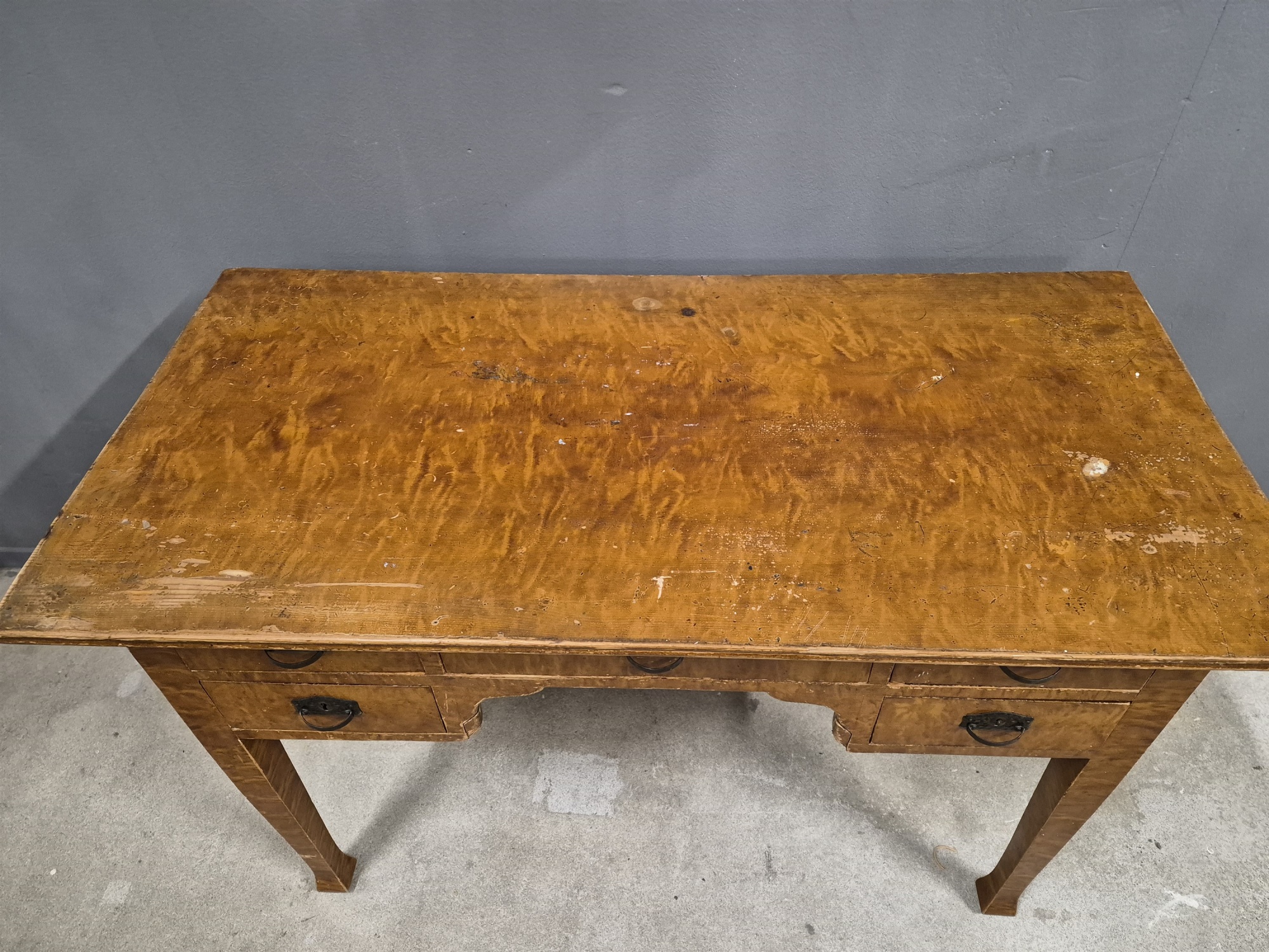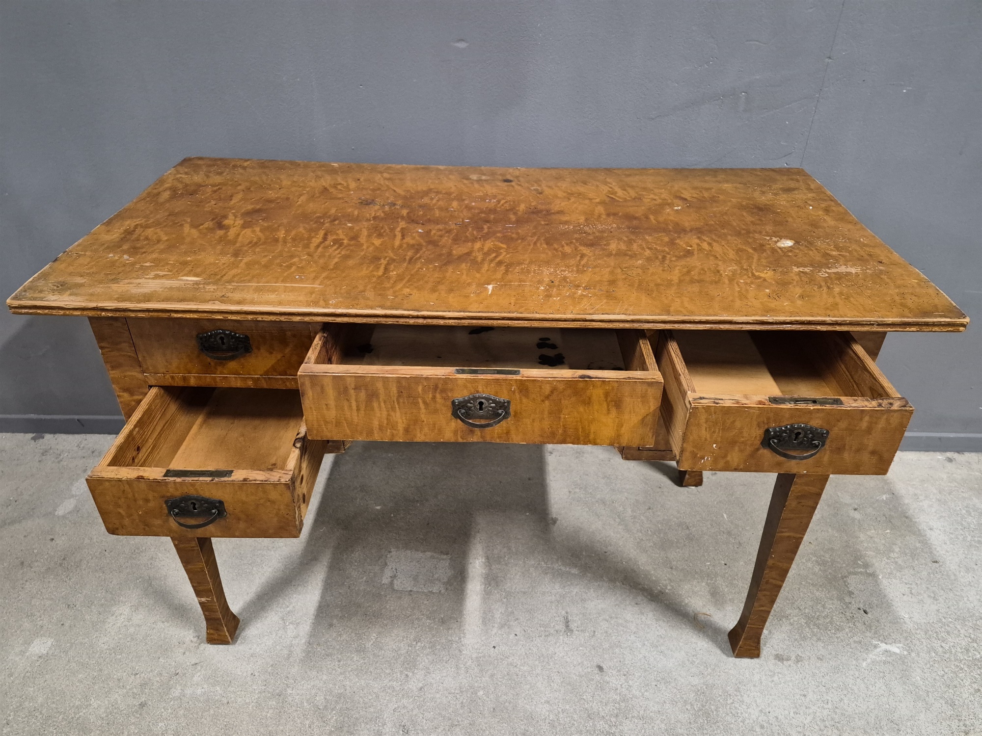 Skrivbord med lådor, skav och märken finns, längd 121 cm, bredd 59 cm, höjd 79 cm