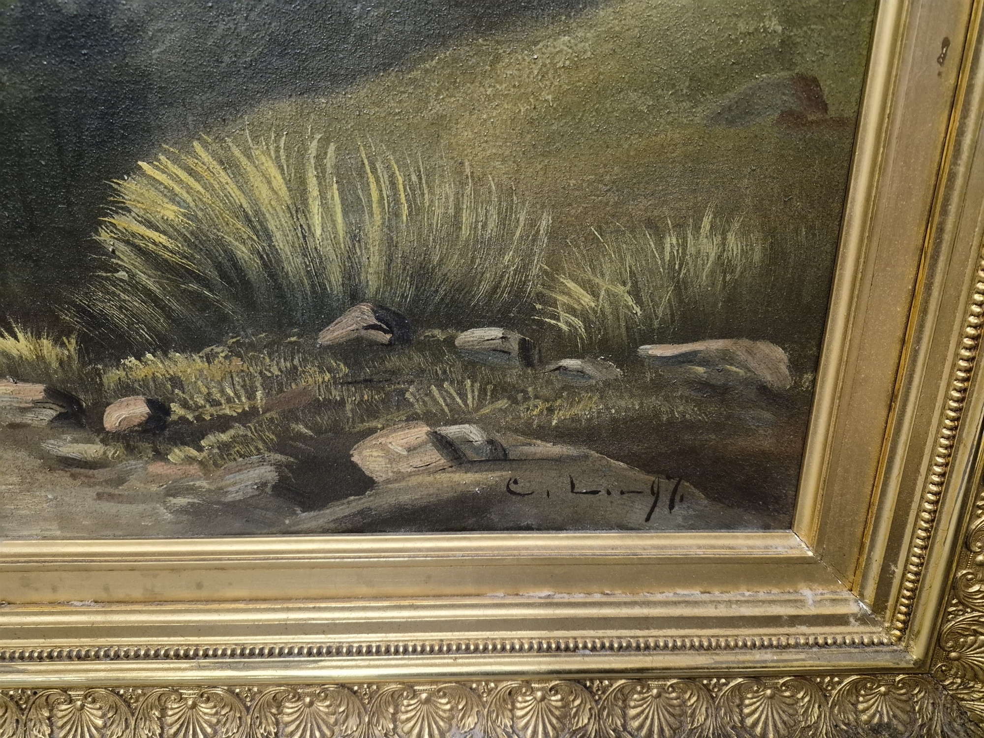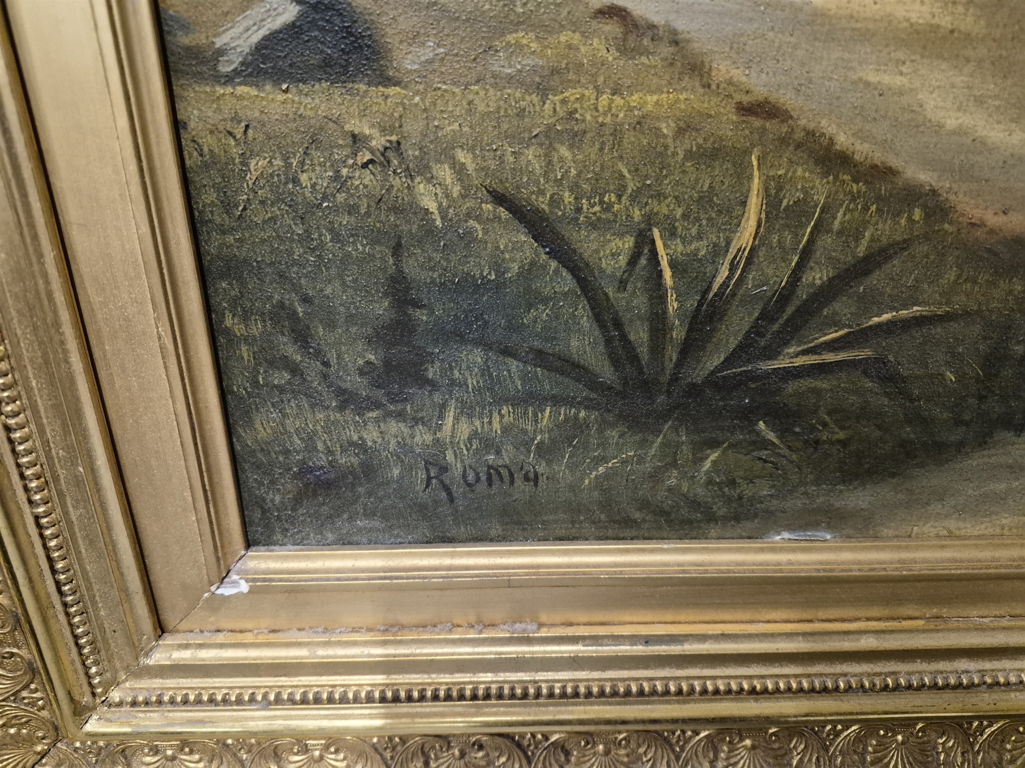 Bilder Monogramsignerad C.L 1896 "Roma", mått 117 x 94 cm, märke i duken se bild