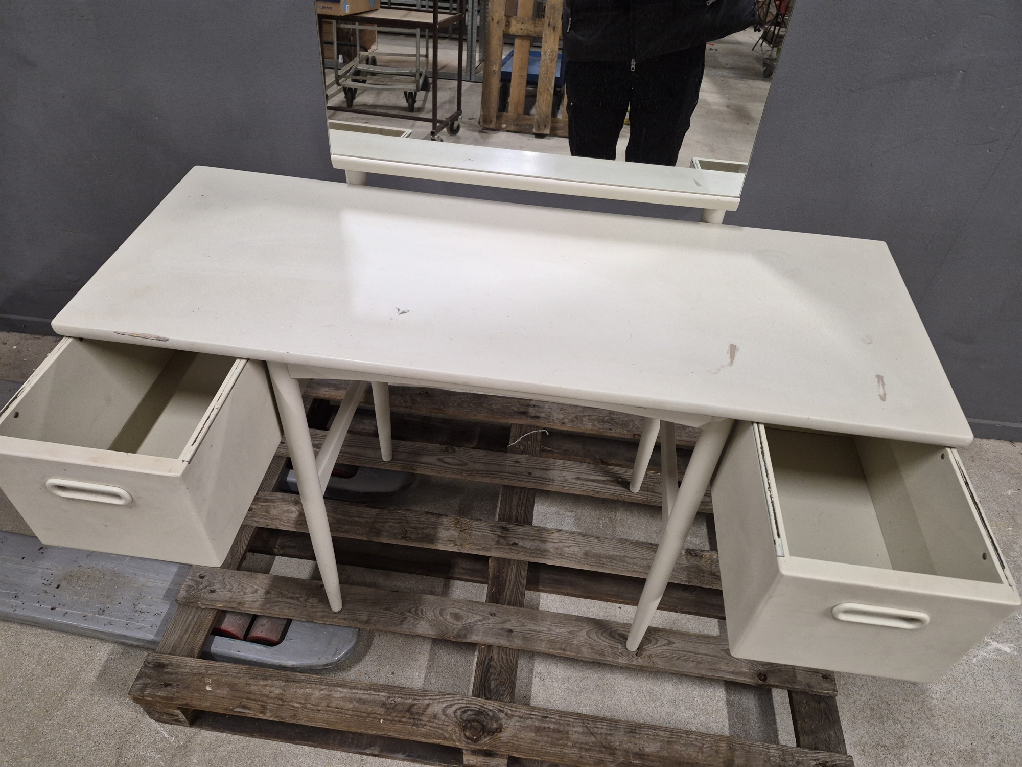 Sminkbord med lådor 1960-tal, märken finns, längd 105 cm, bredd 42 cm, höjd 103 cm