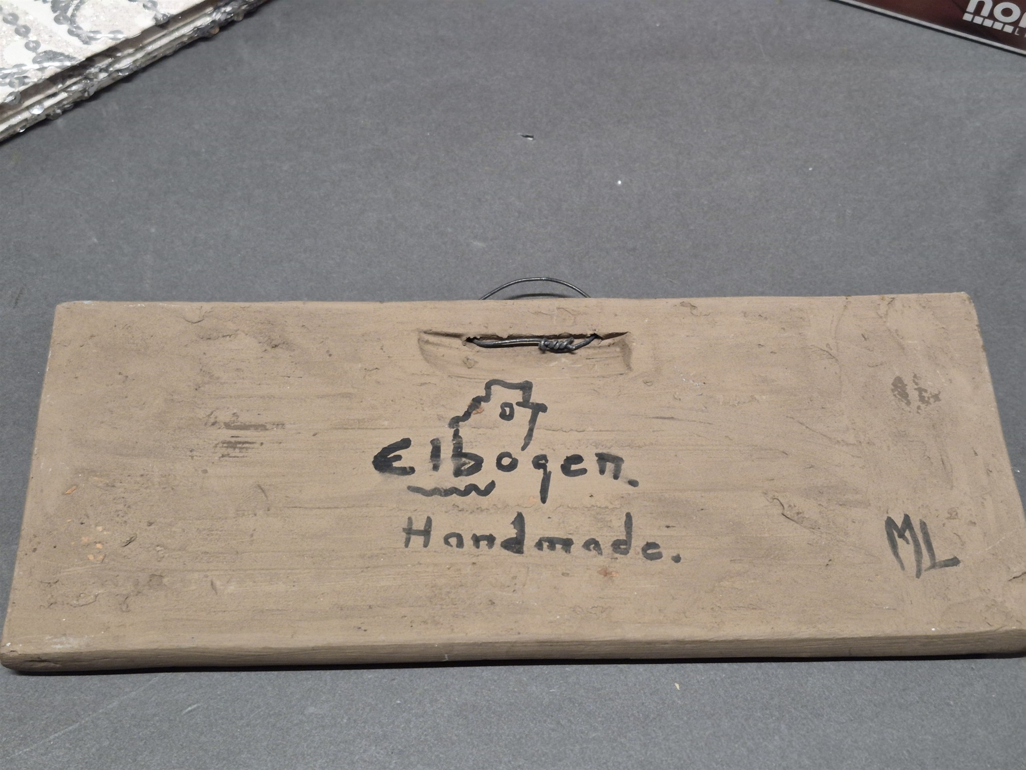 Parti bla serietidningar, elljusstake och keramiktavla Elbogen, högsta höjd 33 cm