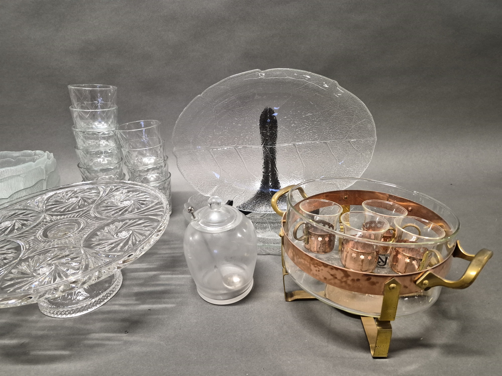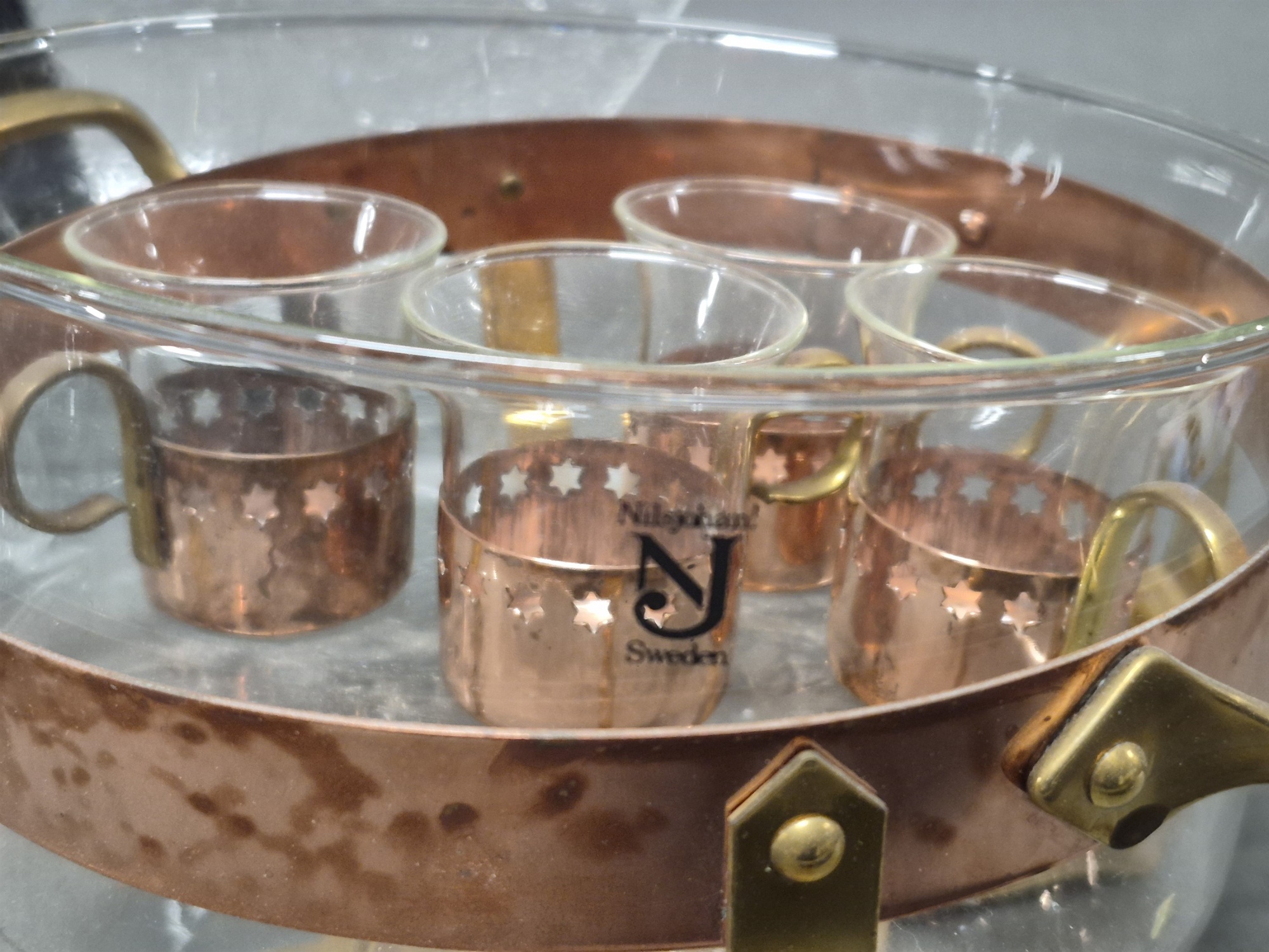 Parti glas bla glöggset NilsJohan, glas Iittala och skålar, längsta mått 42 cm, 2 lådor