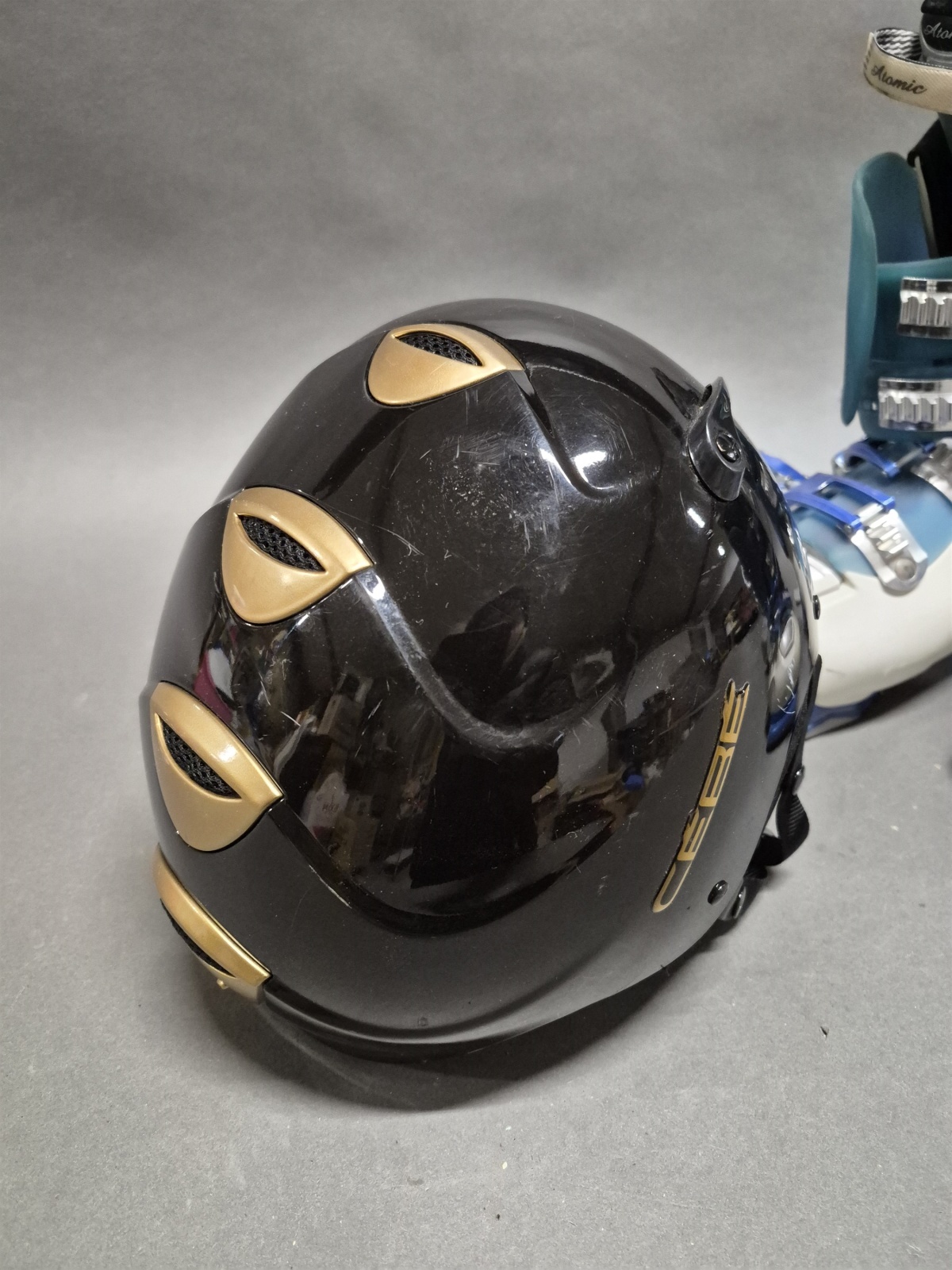 Bilder Pjäxor Atomic och skidhjälm strl 58/M