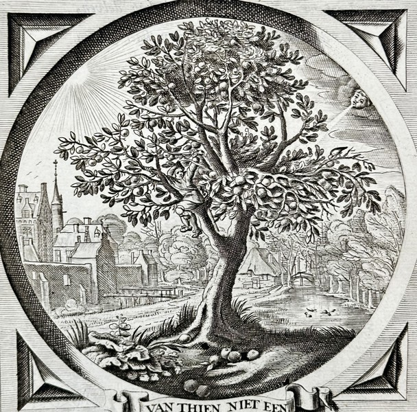Bilder Jacob Cats (1577-1660) – Allegory of the withered tree and the town – Engraving (1658)
