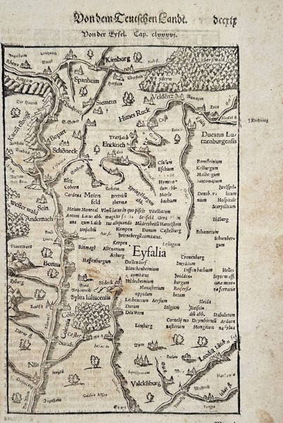 Bilder Sebastian Münster (1488–1552) – View of the Eifel region – Woodcut (1550)