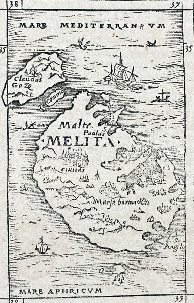 Bilder Sebastian Münster (1488–1552) – View of Malta and Gozo – Woodcut (1550)