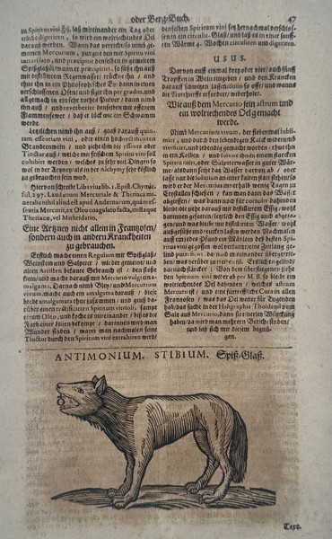 Bilder Ulisse Aldrovandi (1522-1605) – Antimony or the Grey Wolf – engraving (1648)