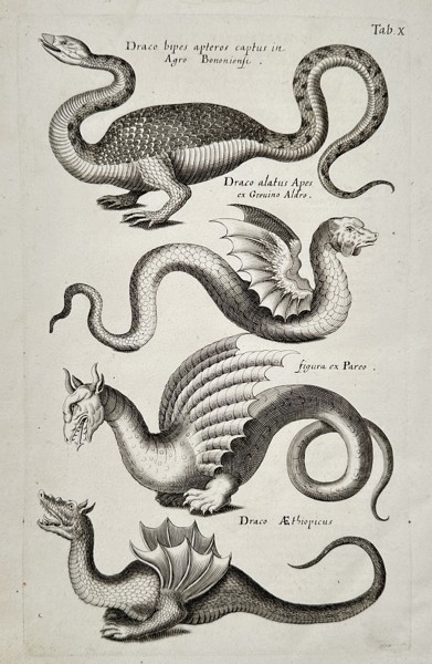 Bilder Matthäus Merian the Younger (1621-1687) – Studies of Dragons and Winged Serpents – engraving (1650)