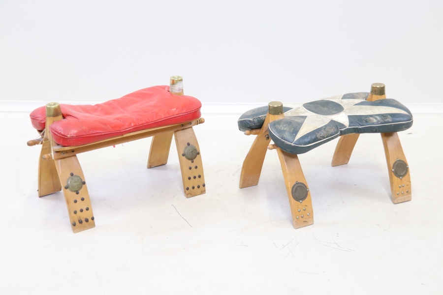 Bilder Kamelsadelpallar, 2 st, trä/skinn.