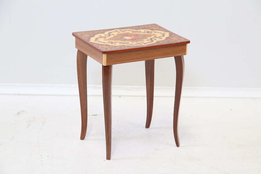Bilder Bord med speldosa, trä/textil, Italien, 1900-tal.