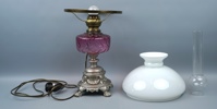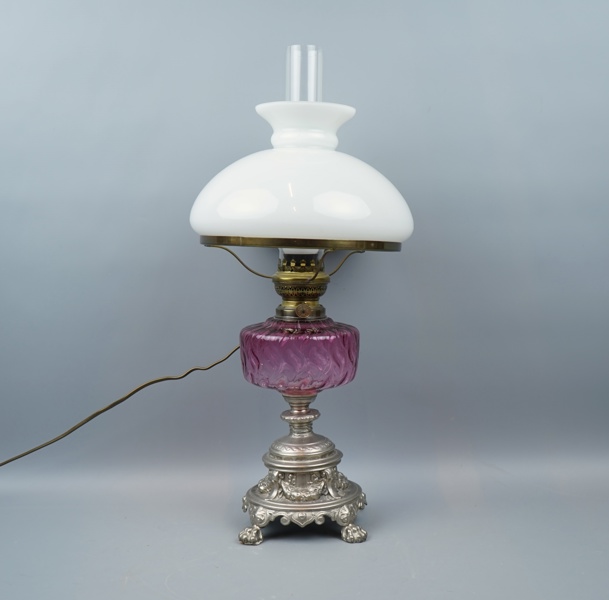 Fotogenlampa, elektrifierad, metall/glas.