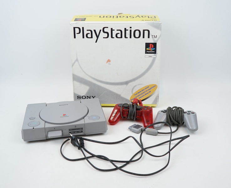 Playstation med 2 st handkontroller.