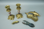 Ljusstakar m.m, 5 delar, mässing/porslin.