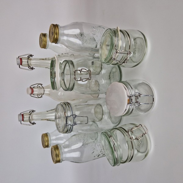 Med patentlock och plåtlock. Olika tillverkare och storlekar, de flesta med tätningsring.