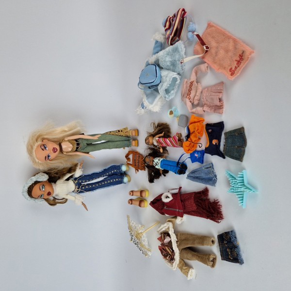 Bratz, "Yasmin" och "Cloe", längd 25 cm. Lil' Bratz "Sasha" och "Yasmin", längd 11 cm.. Med kläder och accessoarer.