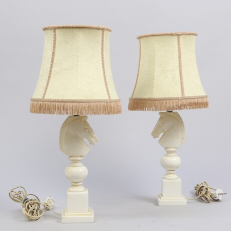 Bilder Bordslampor ett par, Italien, 1960-tal, alabaster, höjd 37 cm + skärmar