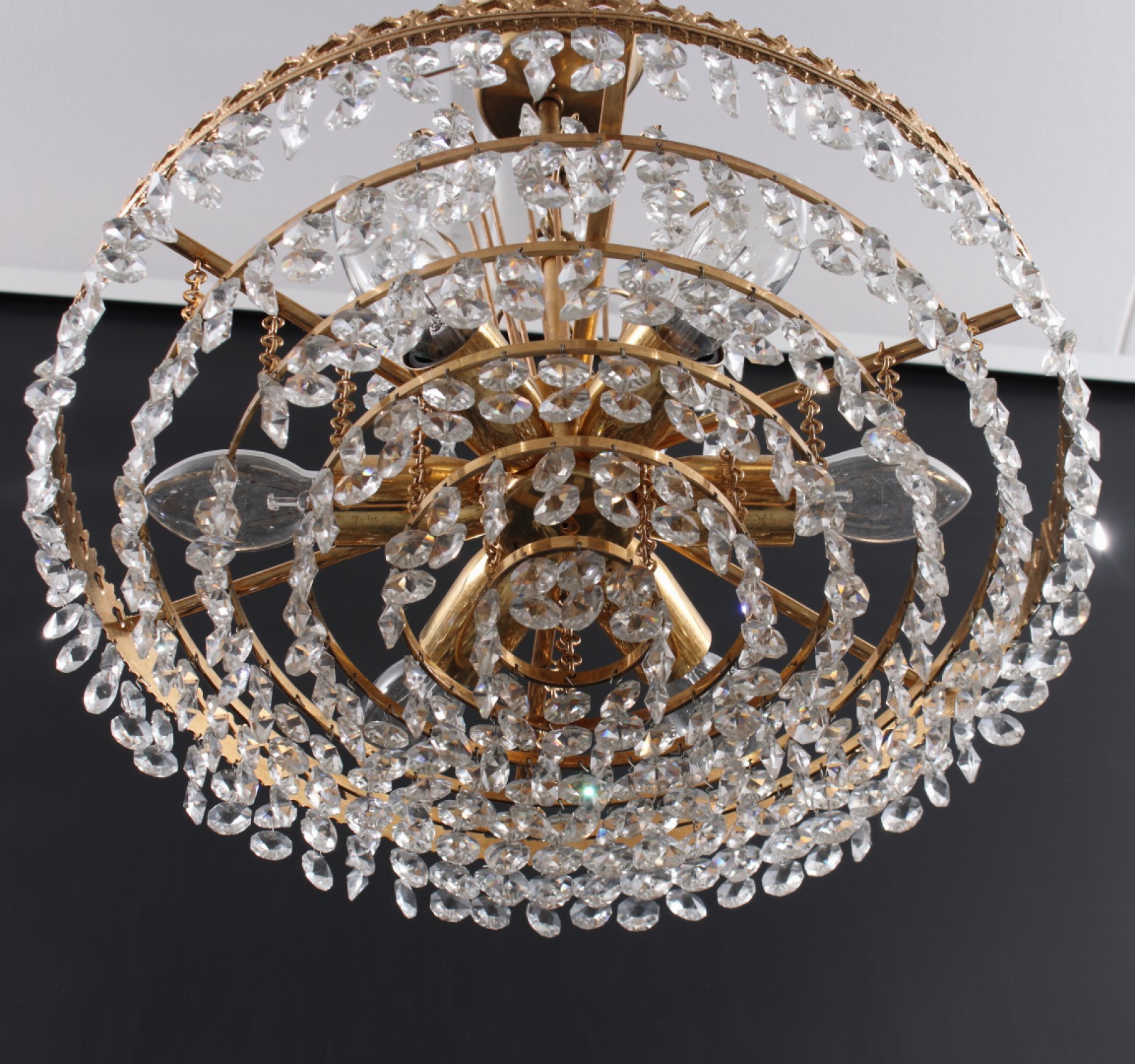 mässing, prismor, 1900-tal, fåtal prismor saknas se bild, H:48cm med kedja B:35cm (Vån1)