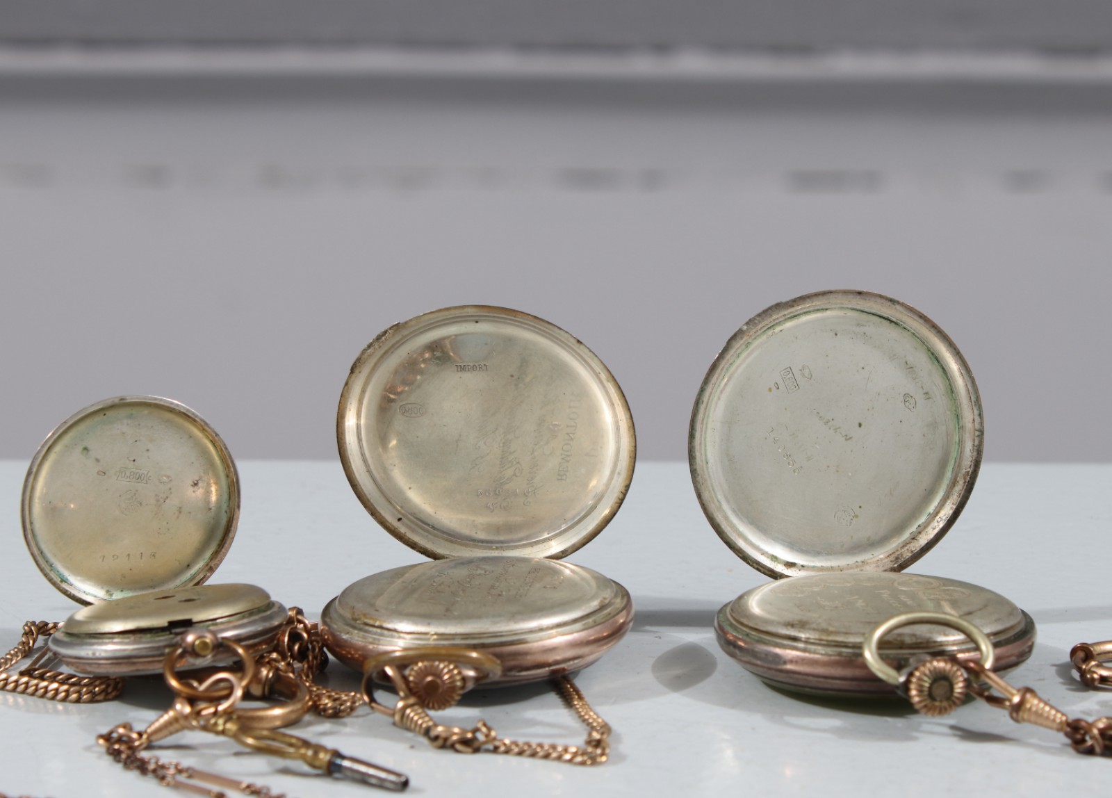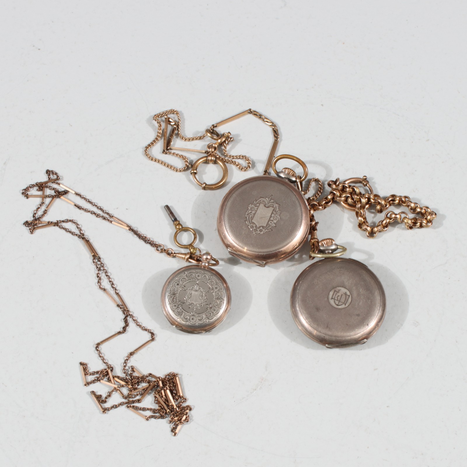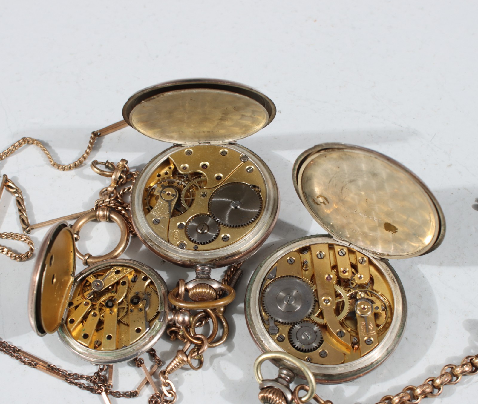 3 stycken, manuella, 1st med nyckeluppdrag, klockkedjor i metall medföljer, ej gångbara vid kontroll, bredd 37-50 mm. (vån3)