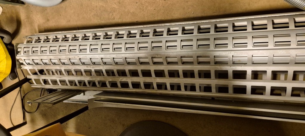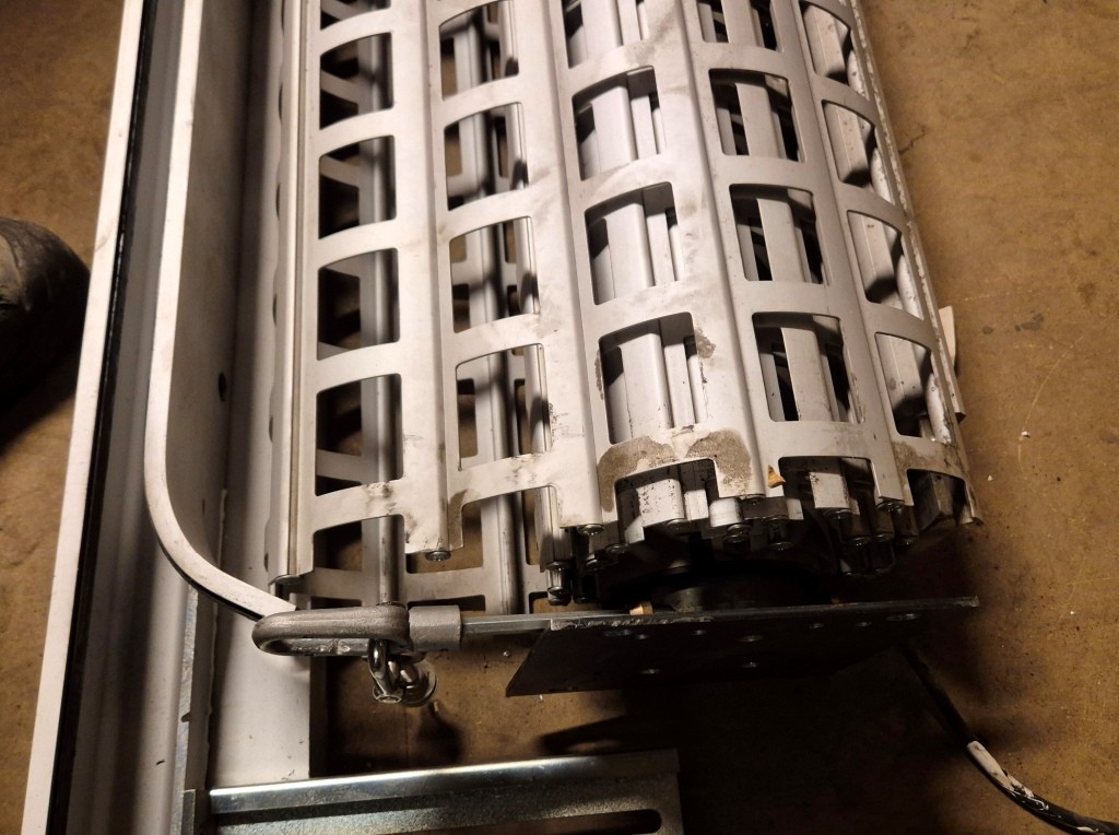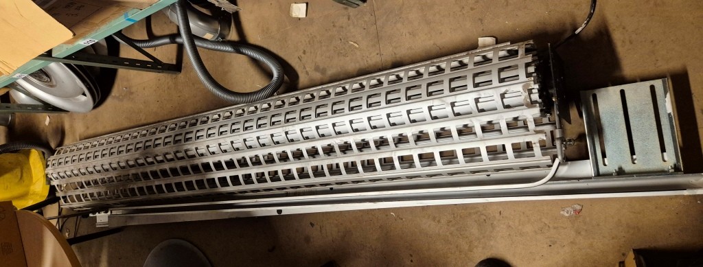 Motordrivet stöldskyddsgaller / JalusiBredd: 2500mmHöjd: 2600mmI fungerande skick, har demonterats under 2025.