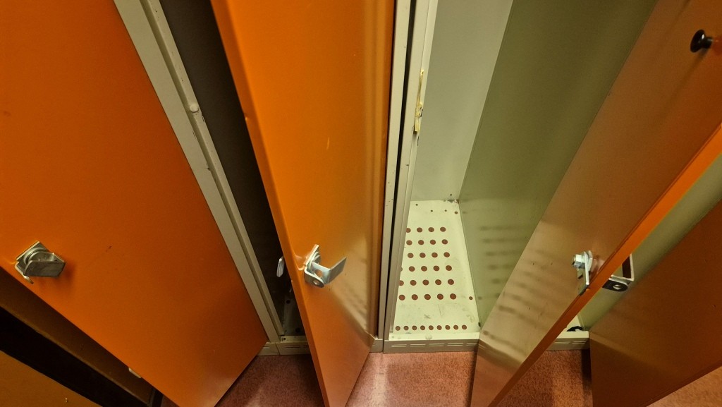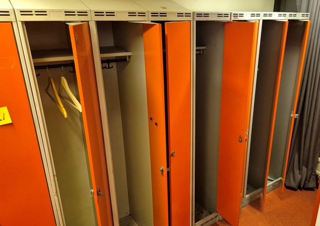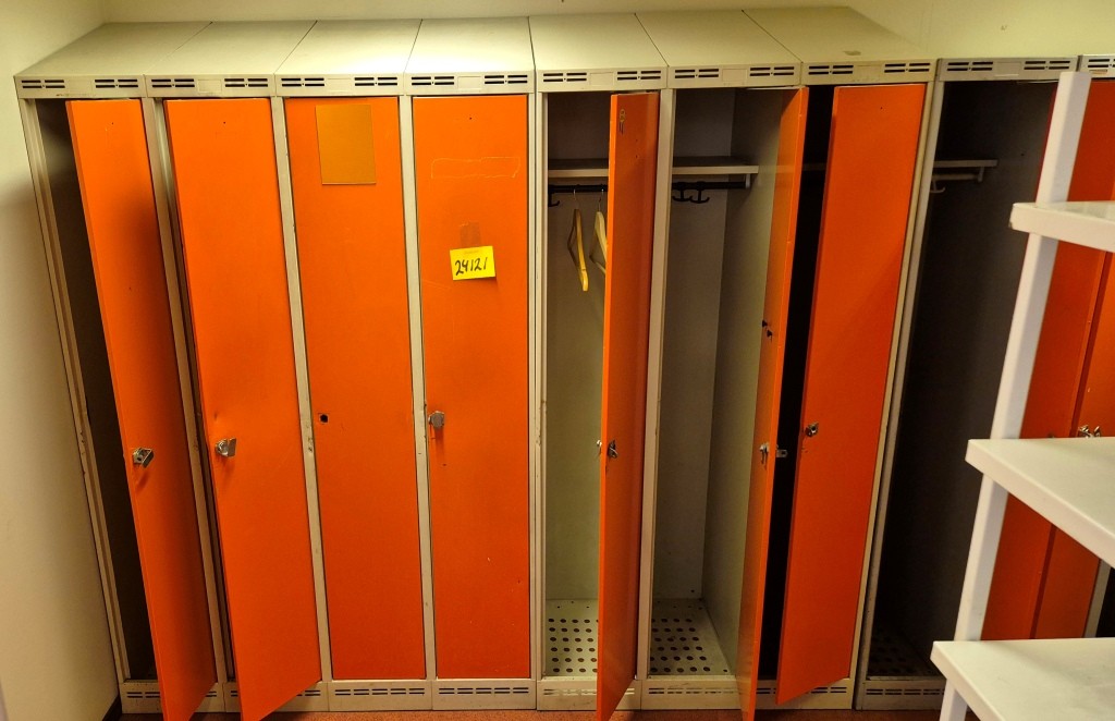 Omklädningsskåp:3st 3-dörrars1st 1-dörrars1st 2-dörrars1st 4-dörrarsHöjd: 190/176cmBredd/dörr: ca 30cm