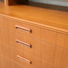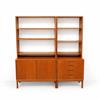 Höjd 165, bredd 90, djup 41 cm. Höjd 165, bredd 60, djup 41 cm. Fanerad teak. Två sektioner med överdelar.