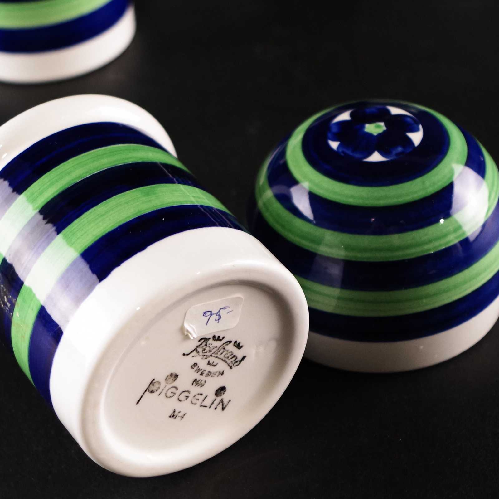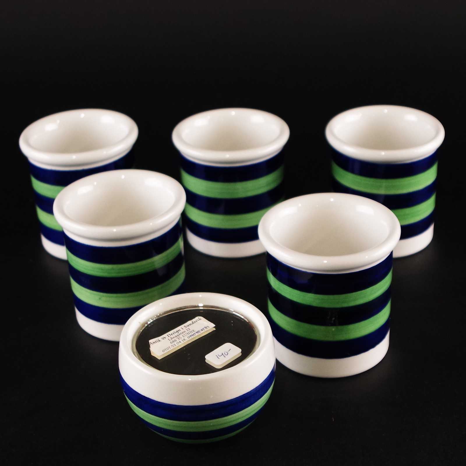 BURKAR/MUGGAR 5st & HANDSPEGEL Rörstrand, Piggelin. H:7cm D:7cm största.