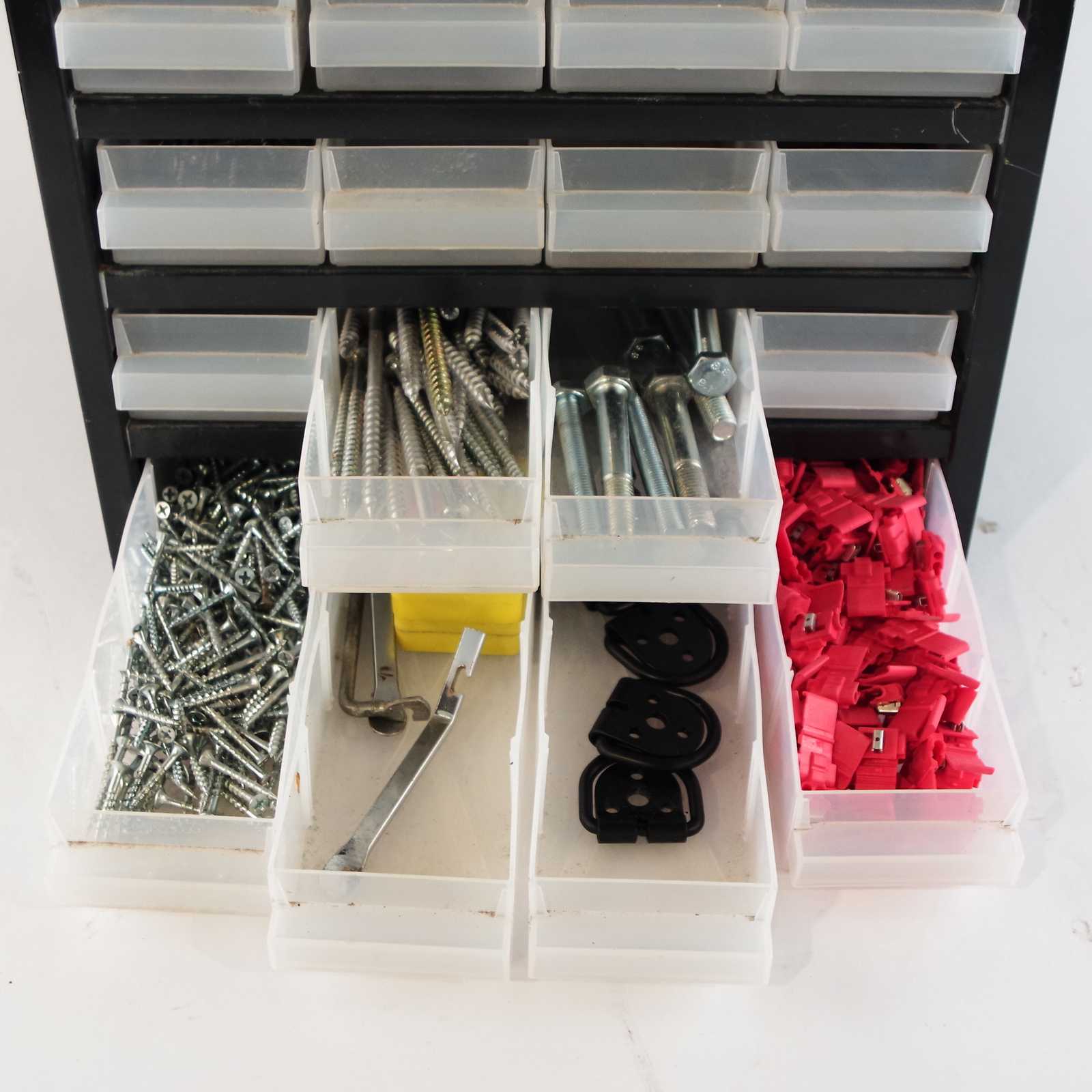 SORTIMENTFACK med innehåll. H:43x 35x 24 cm.