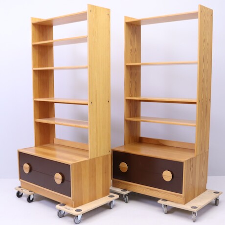 Bokhyllor med underskåp, ett par, furu. Tomas Jelinek, IKEA, "Comet". 1970-tal.175x84x50 cm.