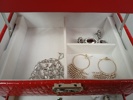 Bilder Smyckeskrin i konst-skinn med diverse öronhängen.