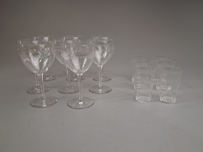 EDWALD HALD, 8 Vinglas & 6 selterglas, "Kerstin", Orrefors.