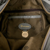 Tillverkad i skinn. Fack med dragkedja invändigt. Mässingsbricka med nummer 373140.