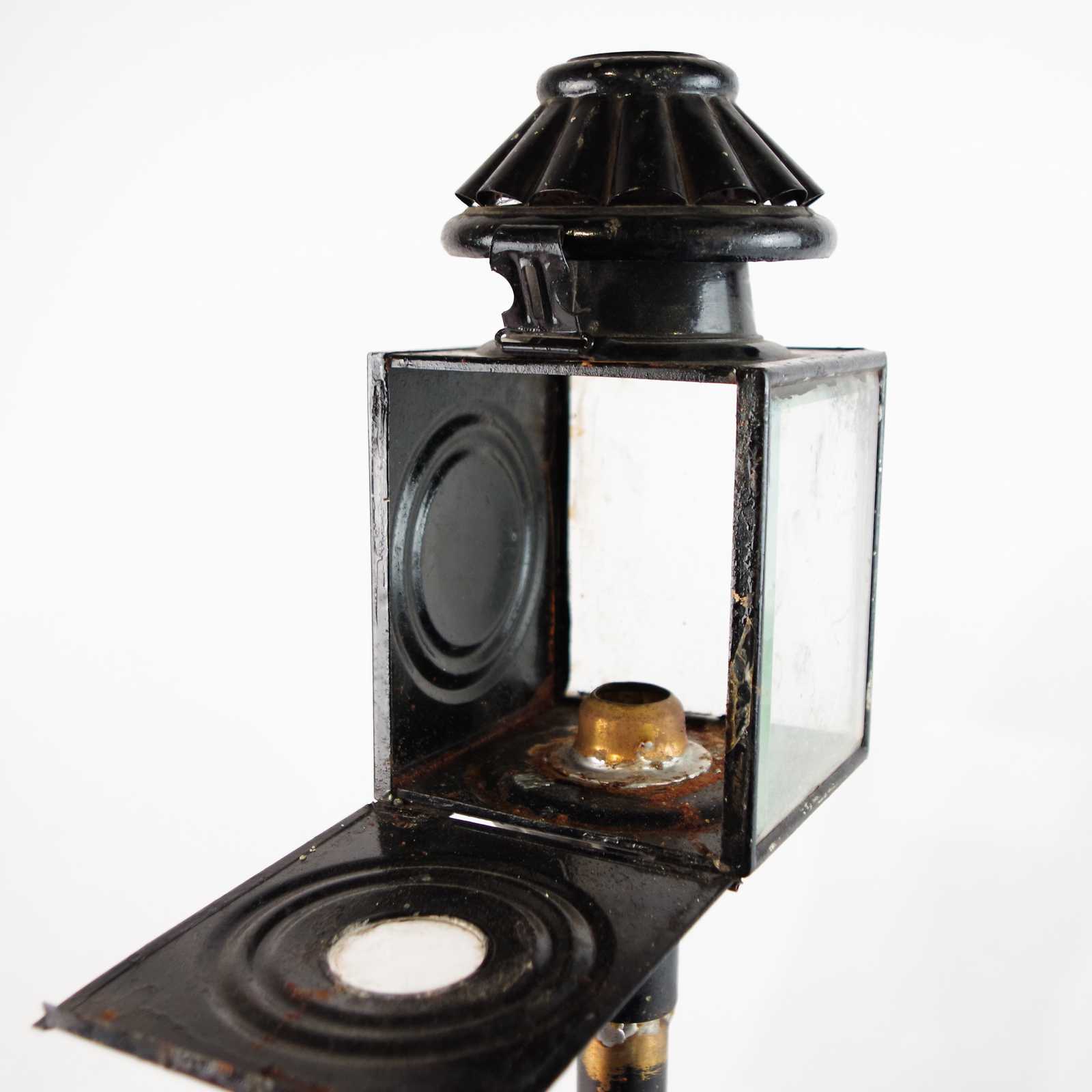 VAGNSLYKTA plåt/glas 1900-talets början. H: 45cm. bruksslitage