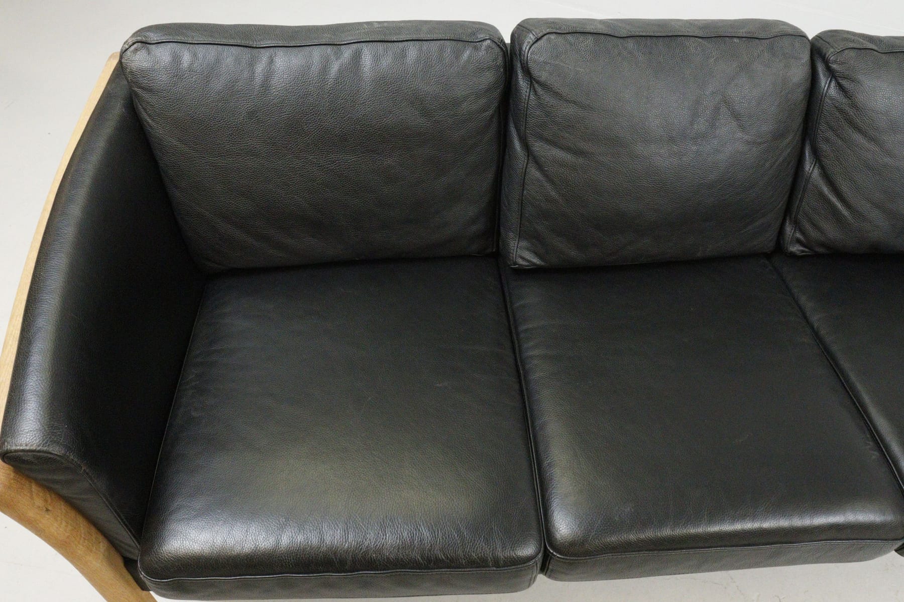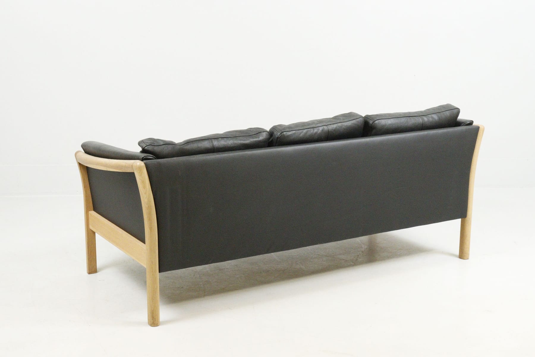 Soffa, svart skinn i trästomme