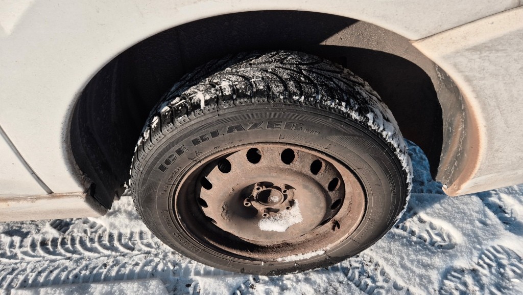 Vinterdäck på plåtfälg (4-5mm mönsterdjup)