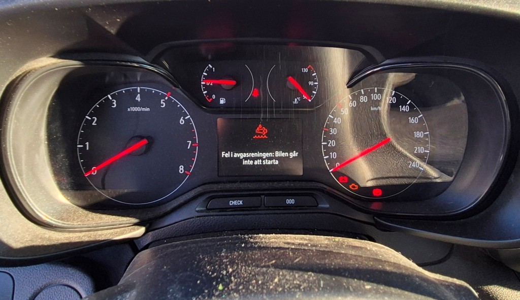 När bilen hämtades visades felmeddelande: Fel i avgasrening: Om 50 km går inte bilen att starta, den koden är nollställd nu för att bilen ska kunna köras.