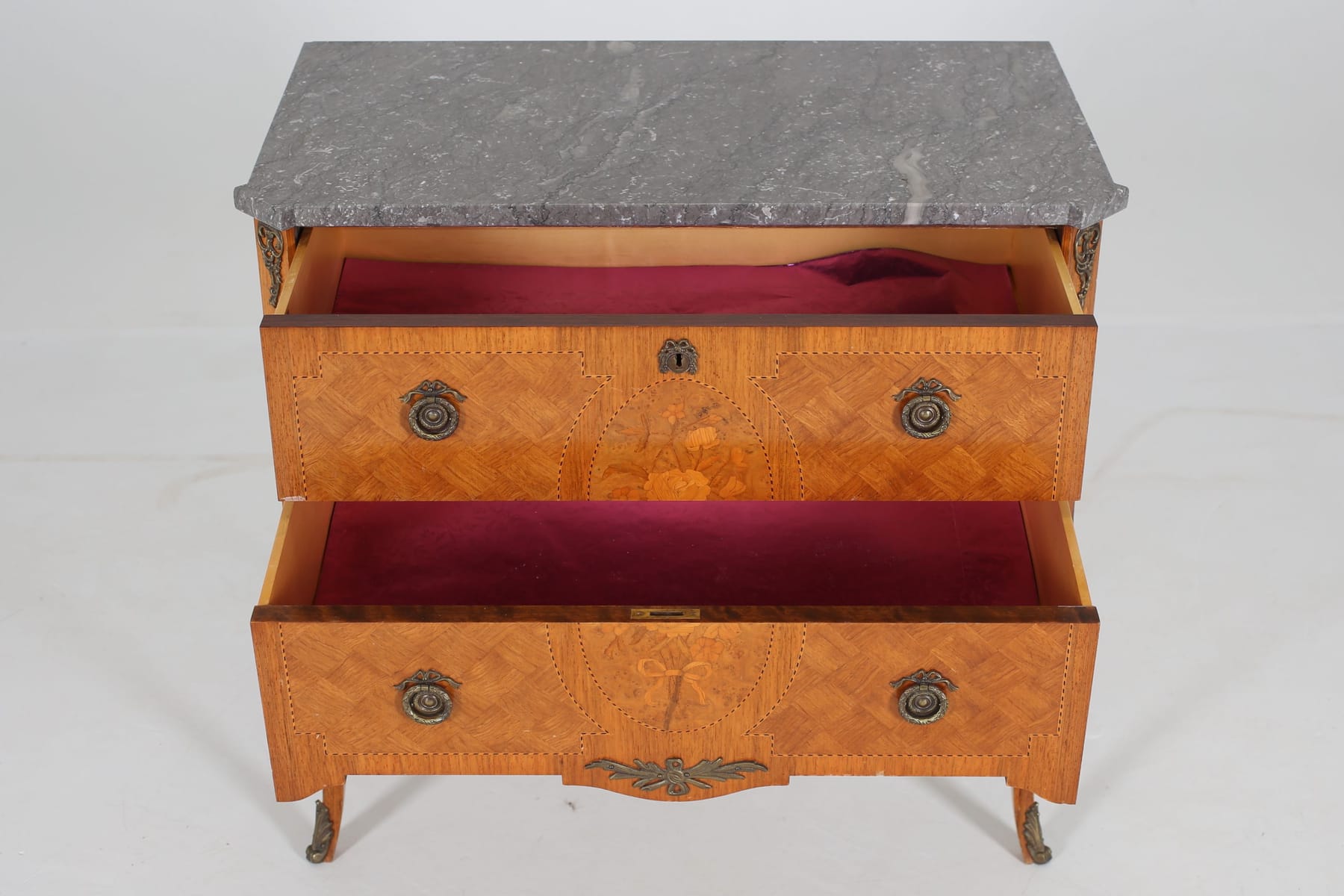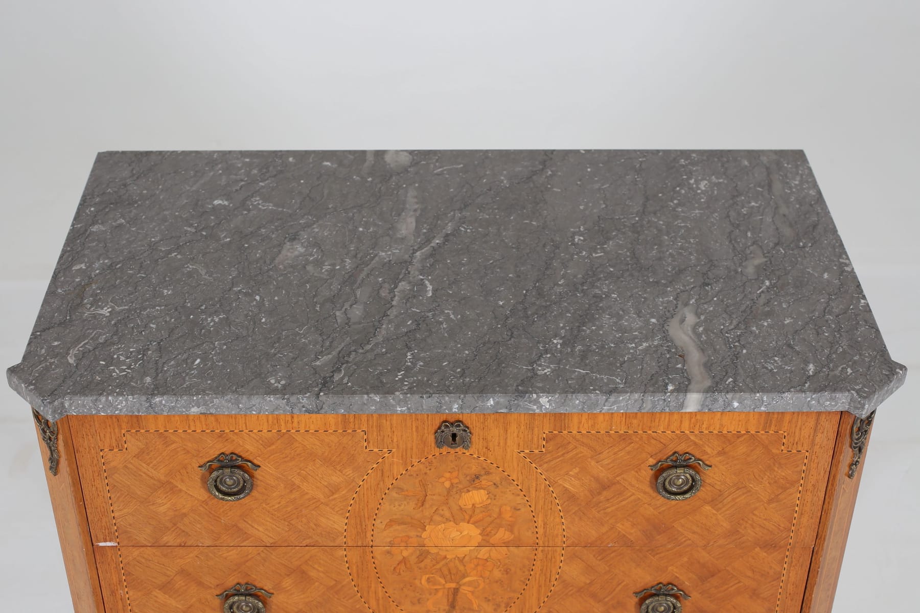 BYRÅ, med marmorskiva och intarsiadekor, gustaviansk stil, 1900-tal