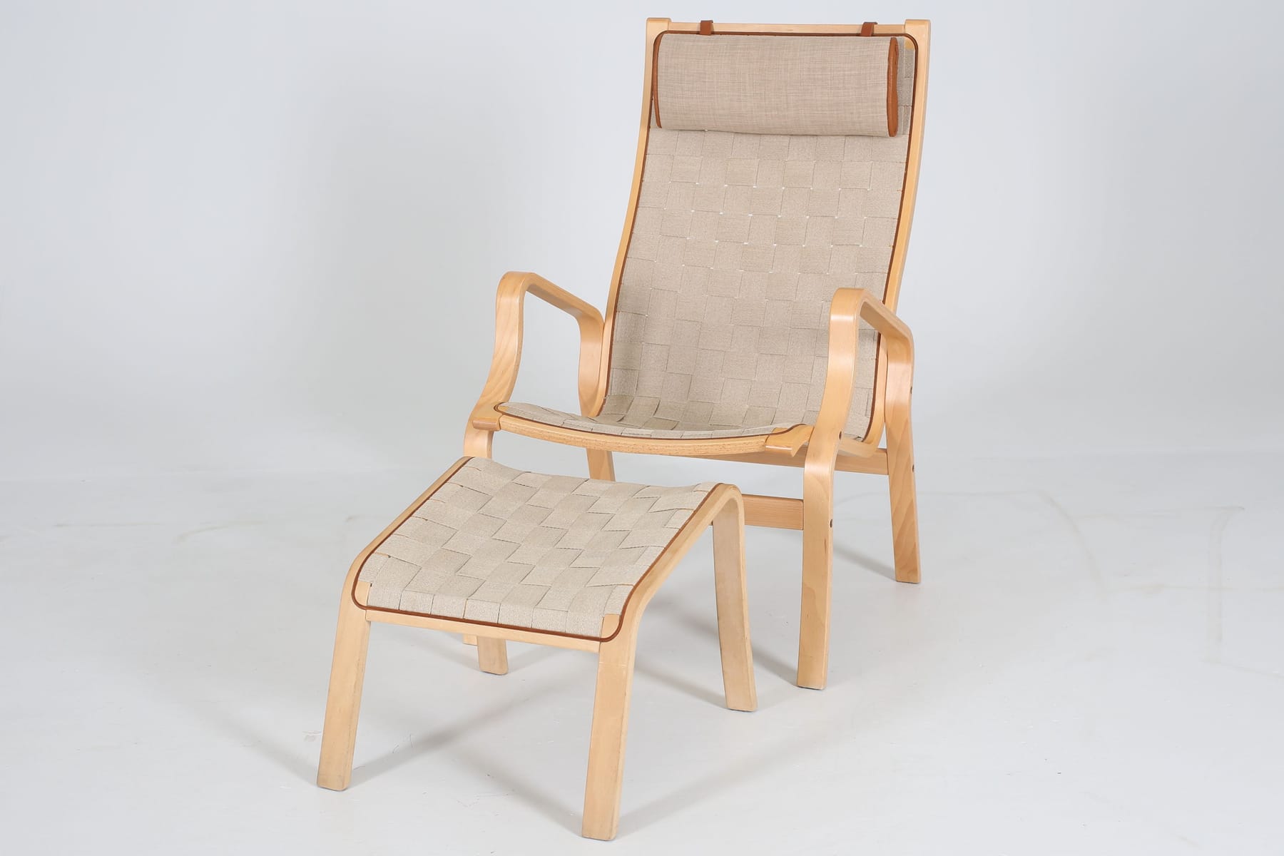 FINN ØSTERGAARD. Fåtölj med fotpall, bok