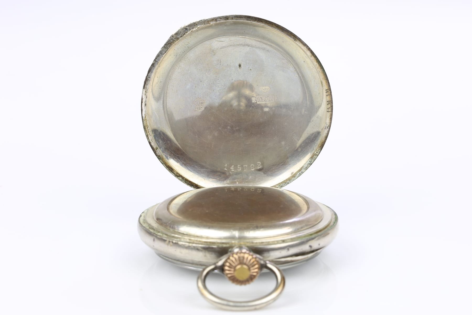 Bilder FICKUR med tidtagarfunktion, underhaltigt silver 800/1000, Schweiz, ca 1882-1933