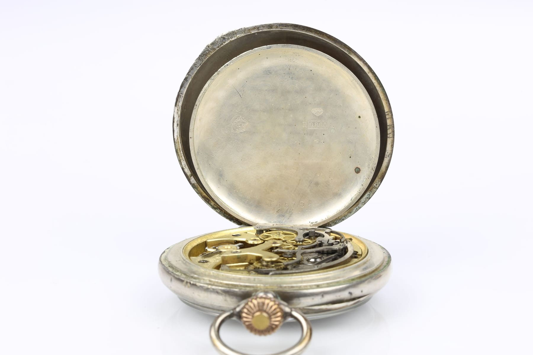 FICKUR med tidtagarfunktion, underhaltigt silver 800/1000, Schweiz, ca 1882-1933